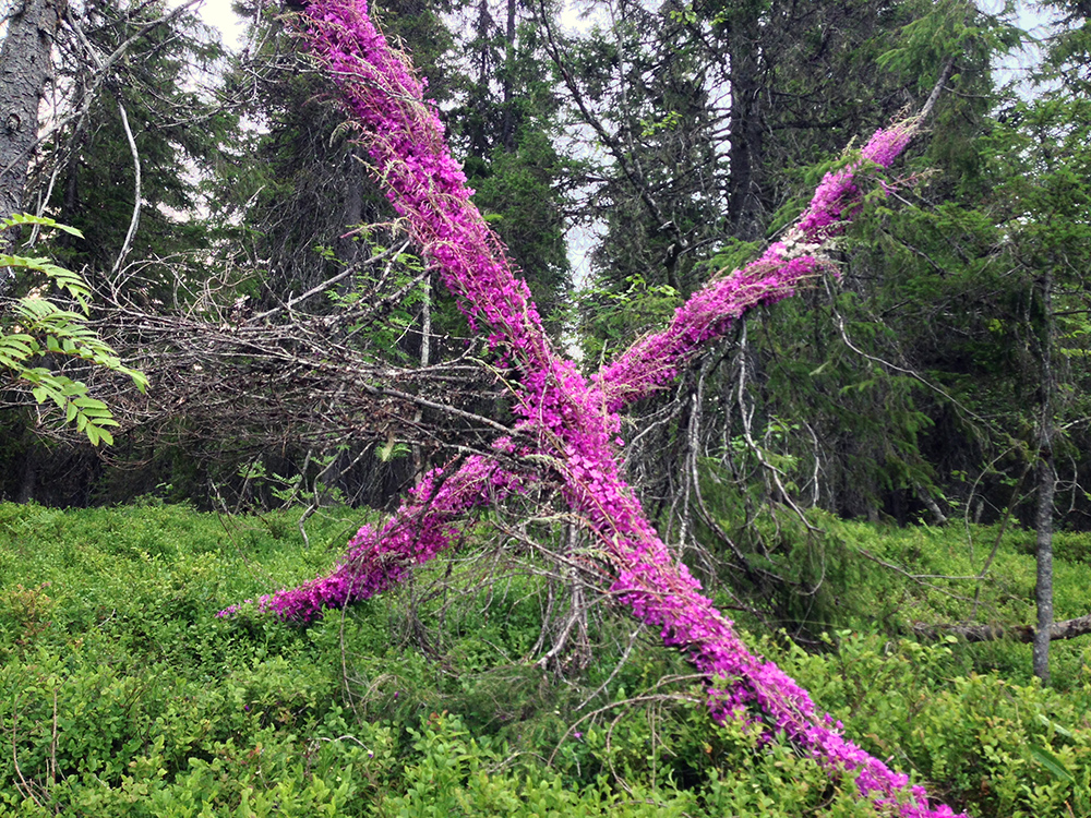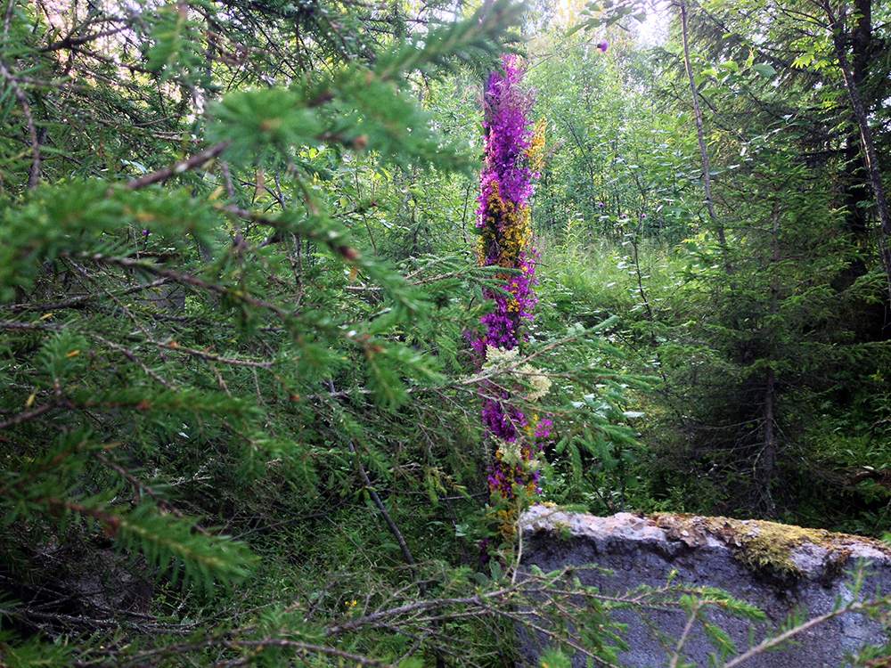 Installation, hand gathered wildflowers, deadwood and ruins.